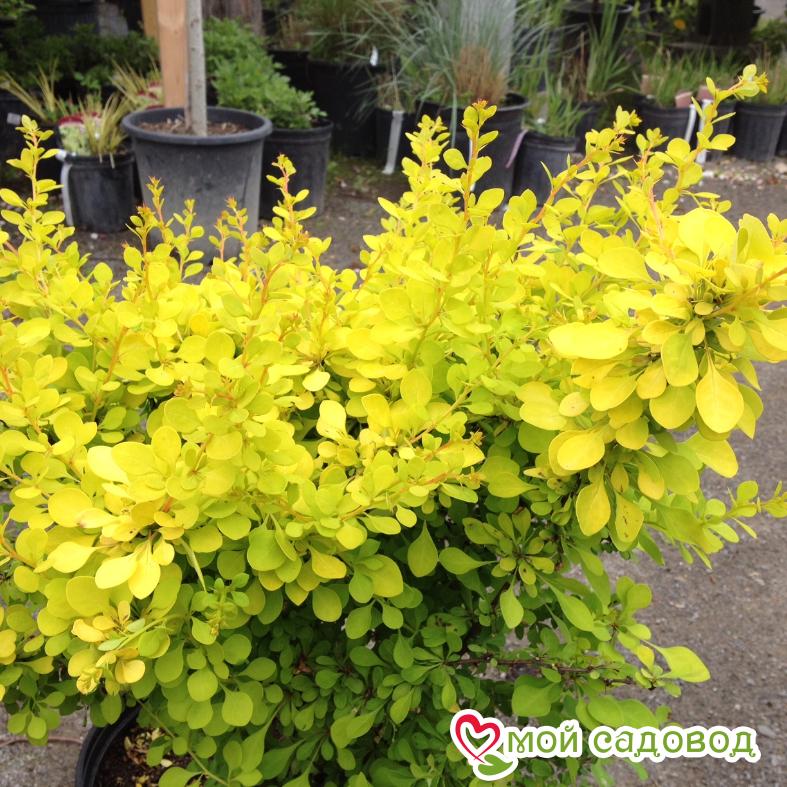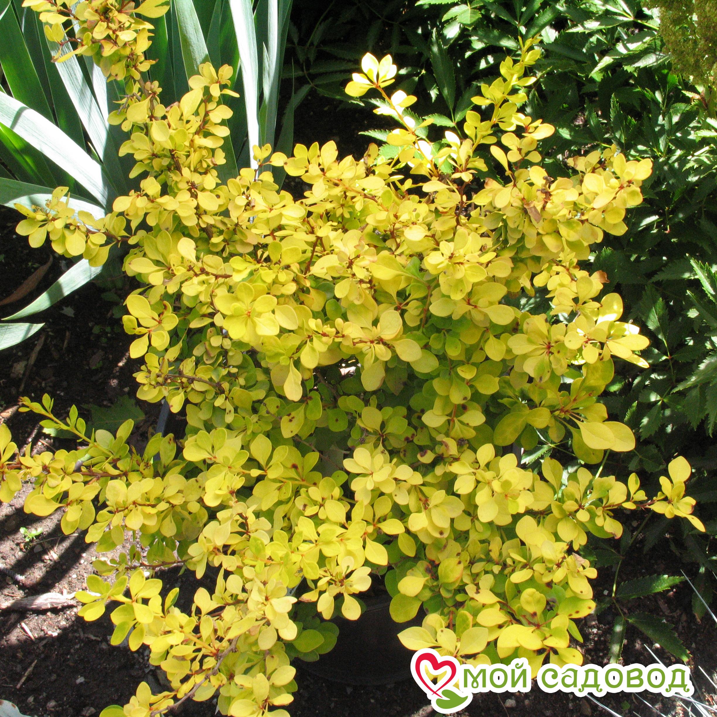 Барбарис тунберга Ауреа (Berberis thunbergii Aurea) — плотный округлый кустарник до 80см высотой и до 1м в диаметре. Молодые побеги желтовато-зеленого цвета. Листья мелкие, яйцевидные до 2см длиной золотисто-желтые, осенью краснеют, становясь оранжевыми. Кустарник декоративен в течение всего вегетационного периода.  Предпочитает солнечные места, мирится с небольшим затенением, однако в тени листья могут терять желтую окраску листьев и зеленеть. К почвам нетребователен. Зимостоек.