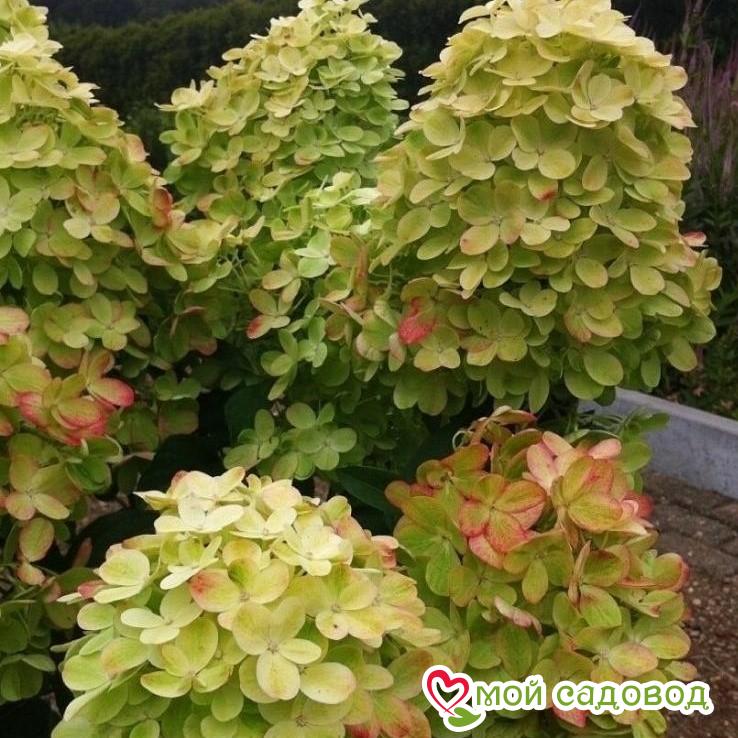 Гортензия Граффити — представляет собой карликовый кустарник до 1 м высотой и  шириной. Жесткие побеги, прямые. Листья яйцевидные, темно-зеленые, с обеих сторон грубо опушенные. Цветки исключительно плодущие, собраны в конусообразные соцветия на верхушках побегов. Соцветия вырастают до 25-30 см длиной, первоначально соцветия светло-зеленые, с белоснежными с аквамариновыми верхушками, в конце лета цветки розовеют, на цветках хорошо видны зеленые и белые прожилки. Почти все однолетние побеги увенчаны соцветиями. Цветение начинается в июле и продолжается до сентября, после цветения цветки высыхают, оставаясь украшением куста в течение осени и зимы. Предварительно следует подготовить посадочные лунки, в которые засыпают дренажный материал (лучше всего мелкий гравий) и органические удобрения. Можно вносить также мочевину и песок, но не рекомендуется сыпать древесную золу, так как она может навредить саженцу. Перед процедурой нужно внимательно осмотреть корневую систему, избавиться от слабых и поврежденных корешков. Корневище осторожно размещают в яме, после чего его нужно присыпать заранее подготовленной питательной почвой. Корневая шейка должна находиться на уровне грунта. Грунт около саженца хорошо утрамбовывается, обильно поливается и мульчируется опилками (можно использовать торф). В нашем интернет-магазине вы сможете купить Гортензия Так же возможно вас заинтересуют Гортензия крупнолистная Альпенглюхен  и Гортензия крупнолистная Аиша